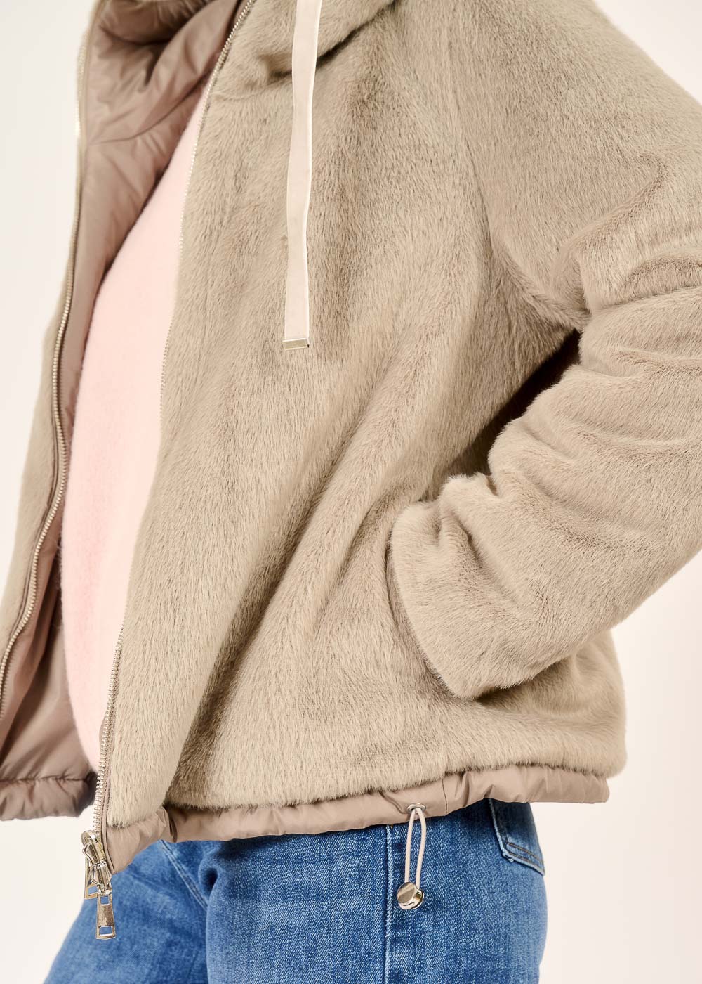 Ein echtes Must-have für die kommende Saison: Eine kuschelige Jacke in angesagtem Teddy-Stoff, die mit ihrer kurzen Passform und der warmen Taupe-Farbe begeistert. Sie ist der perfekte Begleiter für kalte Tage und lässt sich vielseitig kombinieren, ob zu Jeans oder eleganten Hosen. Mit ihrer lässigen Kapuze und dem angenehmen Tragegefühl wird sie garantiert zu Ihrem neuen Lieblingsteil.