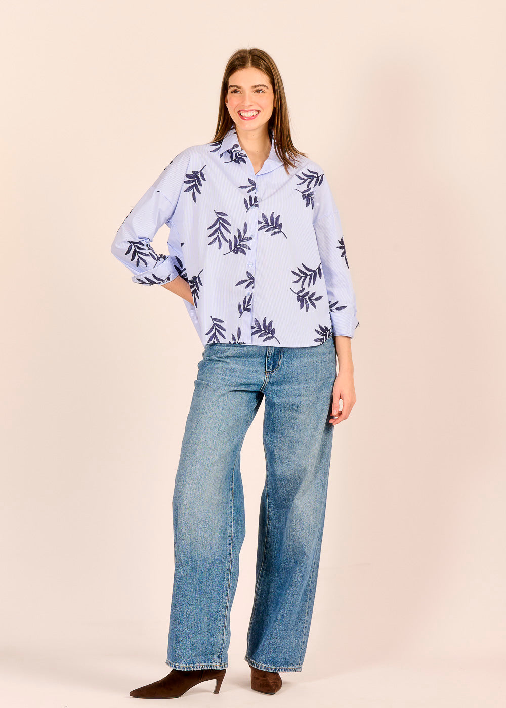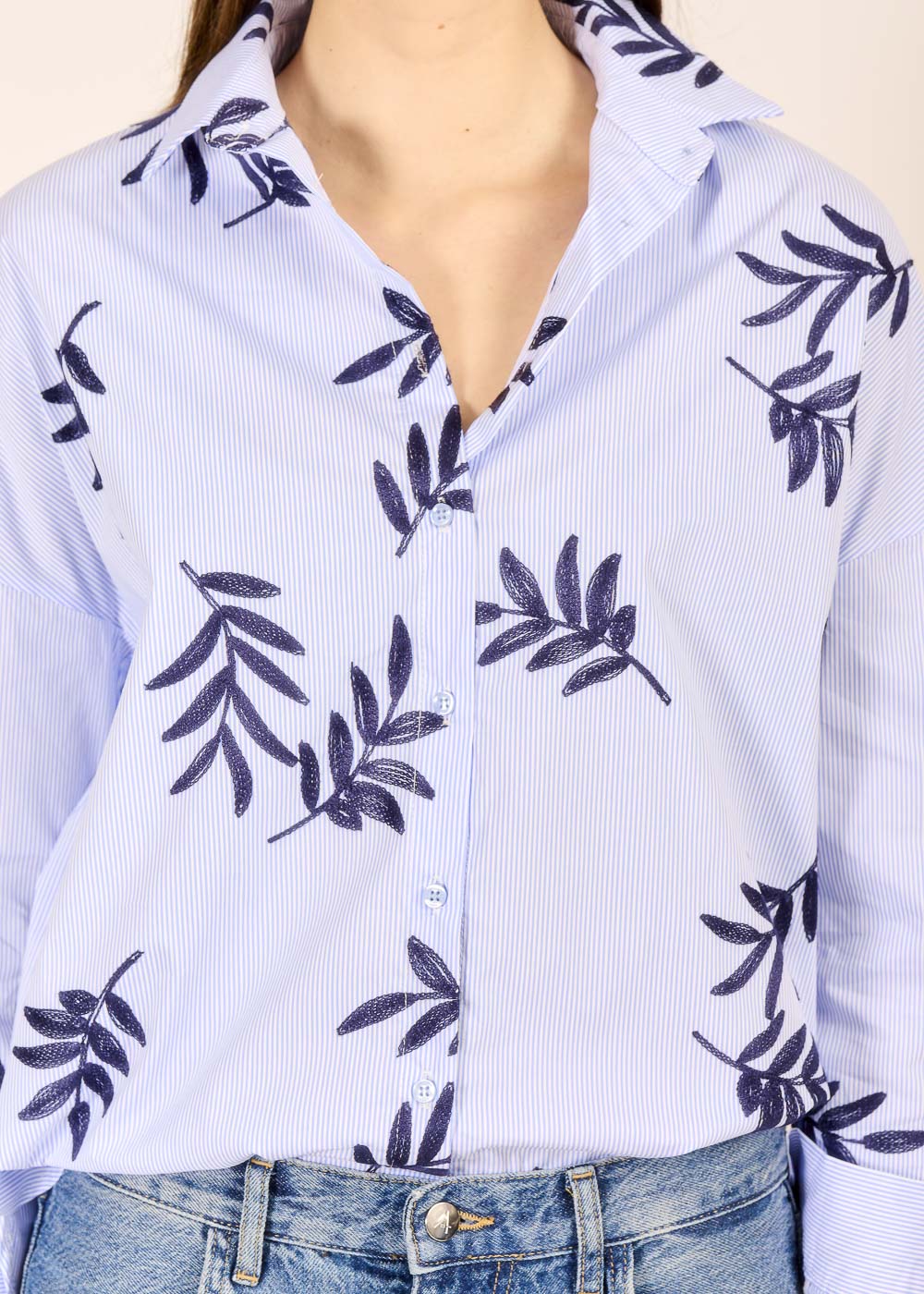 Diese blaue Streifenbluse aus Baumwolle verbindet den klassischen Stil mit moderner Raffinesse. Die feine Stickerei verleiht dem klaren Streifenmuster eine besondere Tiefe. Ob mit Jeans im Alltag oder mit edler Pantalone für den besonderen Anlass gestylt – diese Bluse verleiht jedem Outfit eine besondere Note.