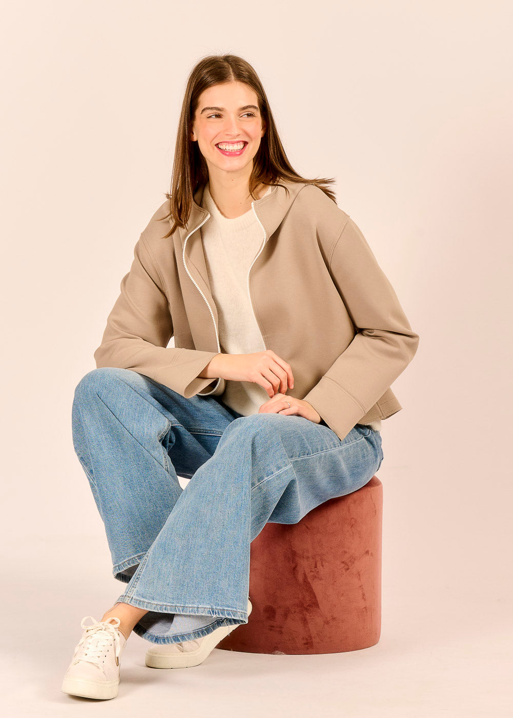 Diese edle Kapuzenjacke aus Baumwolle fühlt sich angenehm weich auf der Haut an. Das sanfte Taupe strahlt Ruhe und zeitlose Eleganz aus. Ob offen oder geschlossen getragen – der raffinierte Schnitt wirkt lässig und souverän zugleich.