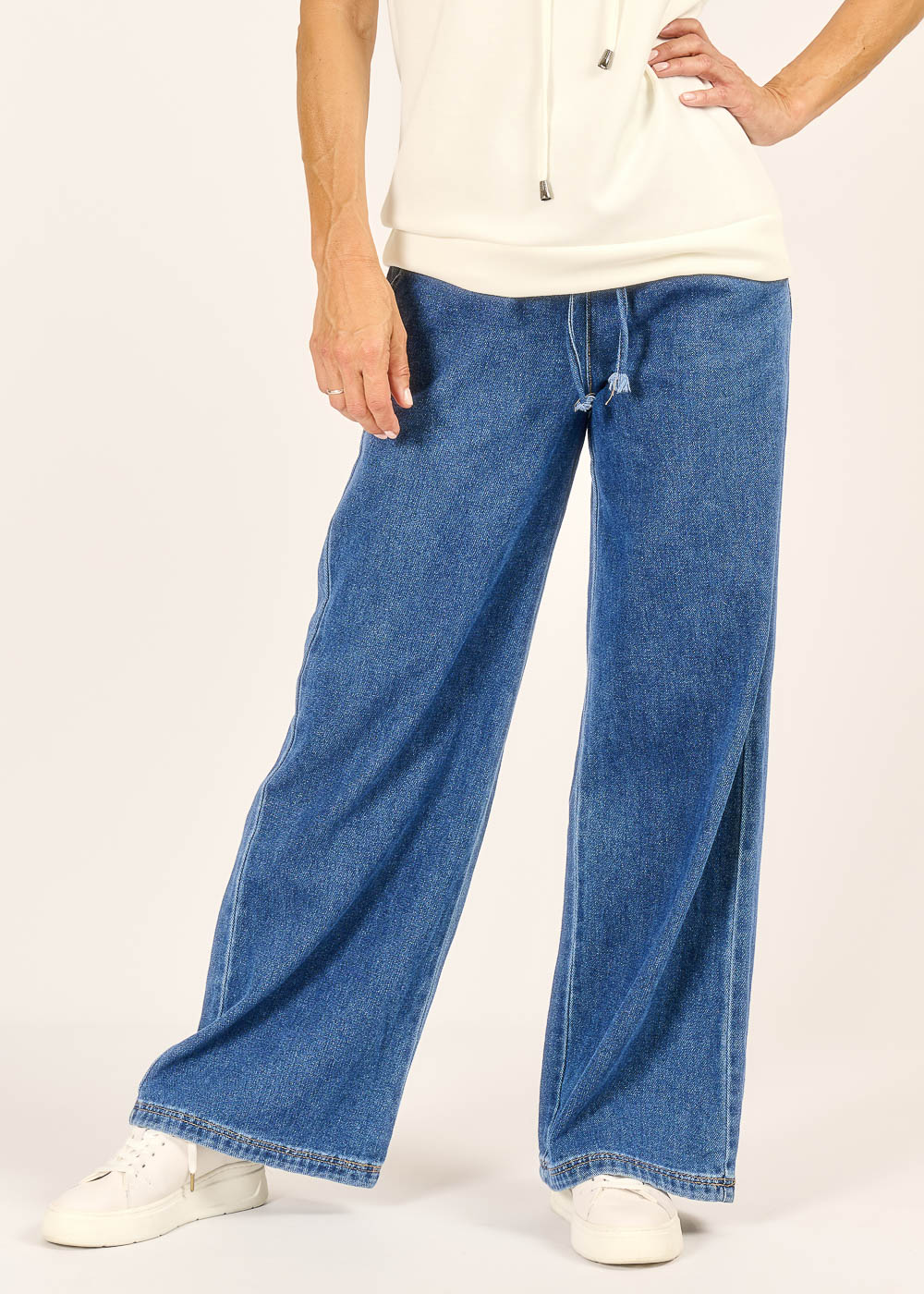 Entdecken Sie den ultimativen Komfort und lässigen Chic mit unserer neuen Jeans im Tunnelzug-Design – perfekt für entspannte Tage. Der weite Schnitt und der flexible Bund garantieren eine bequeme Passform und unbegrenzte Bewegungsfreiheit, ohne dabei auf Stil zu verzichten. Kombinieren Sie sie mit Sneakers und einem schlichten Oberteil für einen mühelosen Alltags-Look, der dennoch absolut im Trend liegt.