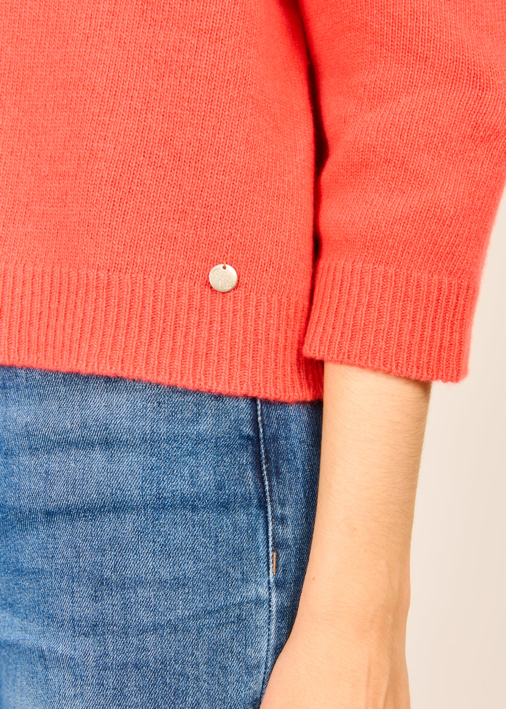 Unser 3/4-Arm Pullover in strahlendem Corallo ist die perfekte Wahl für einen modischen Auftritt. Der Pullover ist aus superweicher Wolle gefertigt, die für ein unvergleichlich angenehmes Tragegefühl sorgt. Mit dem lässigen Schnitt und der lebendigen Farbe verleiht er jedem Outfit eine frische und moderne Note.