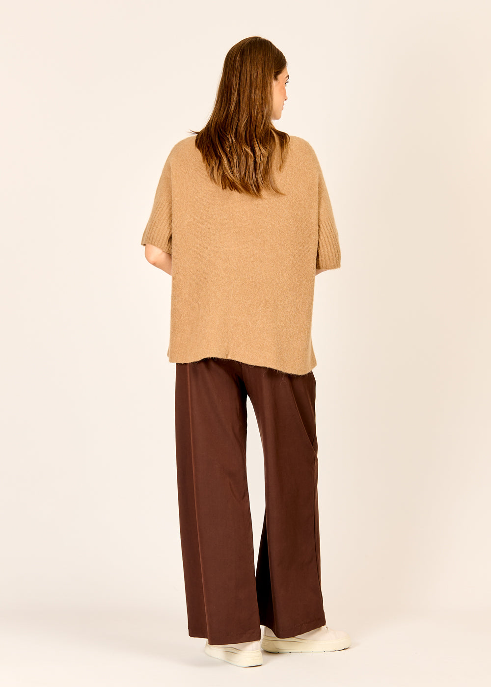Ein absolutes Must-have für entspannte Tage: Dieser lässige Pullover in Camel-Ton umhüllt Sie mit behaglicher Wärme und setzt dabei ein modisches Statement. Der weite Schnitt und die halblangen Ärmel verleihen ihm eine moderne Silhouette, die mühelos mit anderen Kleidungsstücken harmoniert. Perfekt für einen stilvollen Auftritt, ohne auf Komfort verzichten zu müssen.