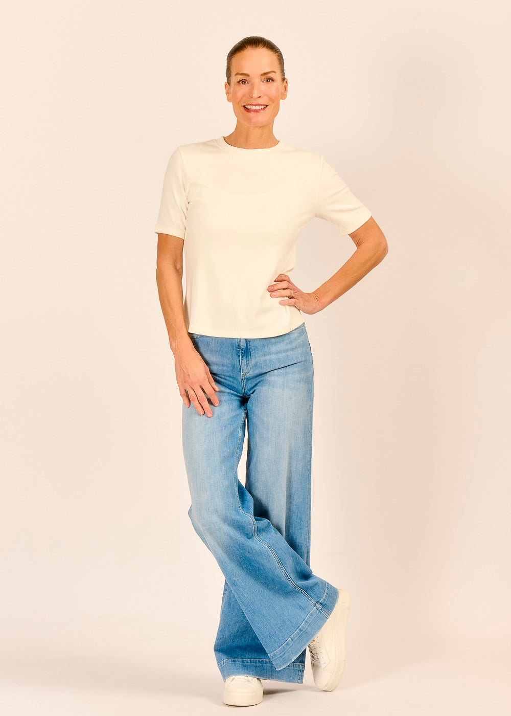 Dank weicher Viskose schmiegt sich das Shirt an deinen Körper und bietet dir einen hohen Tragekomfort. Ein zeitloses Basic in der Farbe Panna, das in deiner Garderobe nicht fehlen sollte.