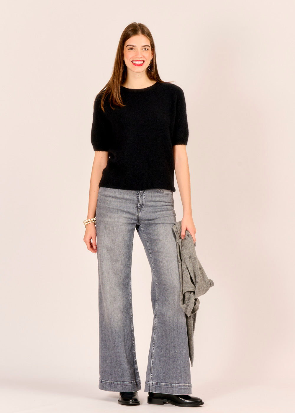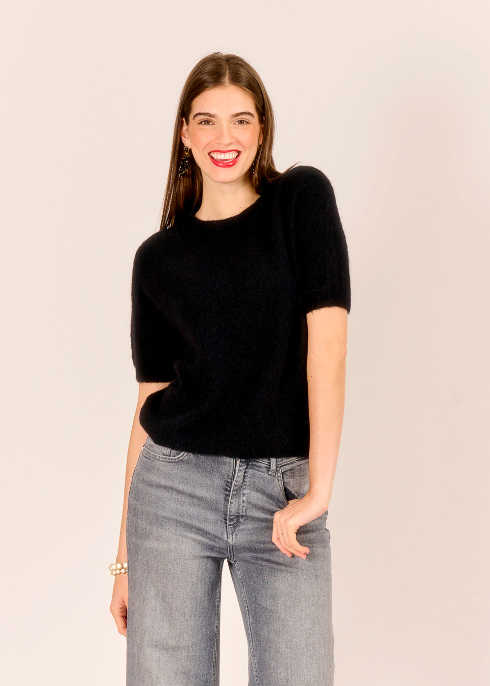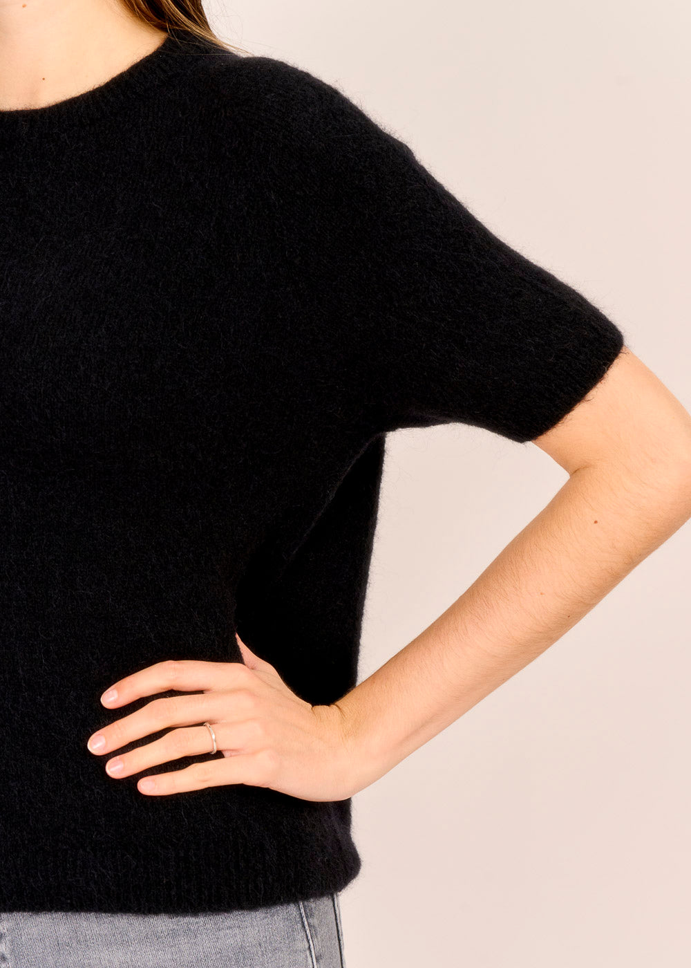 Perfekt für die Feiertage: Der Strickpullover mit kurzen Ärmeln setzt auf elegante Schlichtheit und verleiht jedem Look eine zeitlose Optik. Dieses vielseitige Essential in edlem Schwarz sorgt dank weichem Babyalpaka-Anteil für ein sehr angenehmes Tragegefühl.